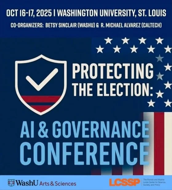 On October 16-17, 2025, a two-day in-person research and practitioner conference — Protecting the Election: AI & Governance — was held at The Charles F Knight Center at Washington University in St. Louis, Missouri (WashU) to discuss research pertaining to AI and governance and how this applies to elections in the United States.
